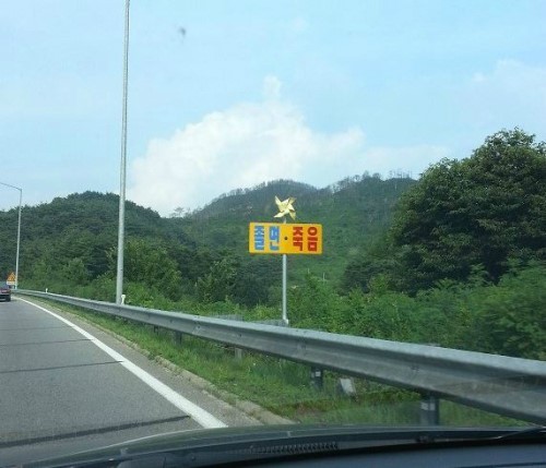 공개된 사진은 한 지방국도의 모습을 촬영한 것으로 도로 옆 가드레일에 설치된 표지판에는 “졸면·죽음”이라는 강력한 문구가 적혀 있다.