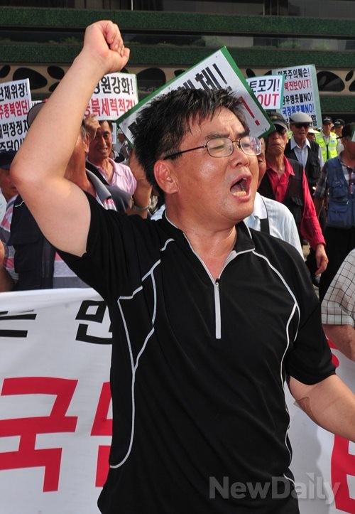 [포토]어버이연합, "민주당은 빨갱이도 아니다! 이념도 없는 종북이다!"