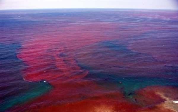 플랑크톤의 일종인 적조류가 급속히 번식하고 있다. -