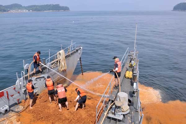 남해안 적조 피해지역으로 출동한 군부대 덕분에