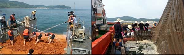 황토 살포-폐사한 어패류 하역 및 매몰 등의