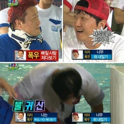 수차례 물에 빠진 유재석은 마치 그 모습이 물귀신을 연상케 해 보는 이들의 웃음을 자아냈다.
