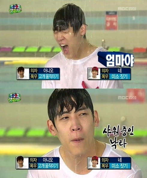 가수 존박이 물벼락을 맞고 자막 굴욕을 당했다.