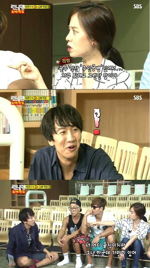 게스트에게 들키지 않고 이광수가 미션을 수행해야하는 게임 방식을 알게 된 멤버들은 못마땅한 표정을 지었다.