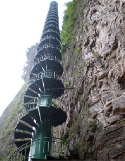 이 살 빼주는 계단 중국 태항산에 있는 것으로 높이 91m, 직경 2m에 331개의 계단이 있는 것으로 알려졌다.