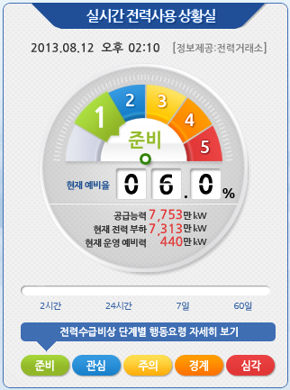 전력예비율이 500만kw 미만으로 떨어졌다.