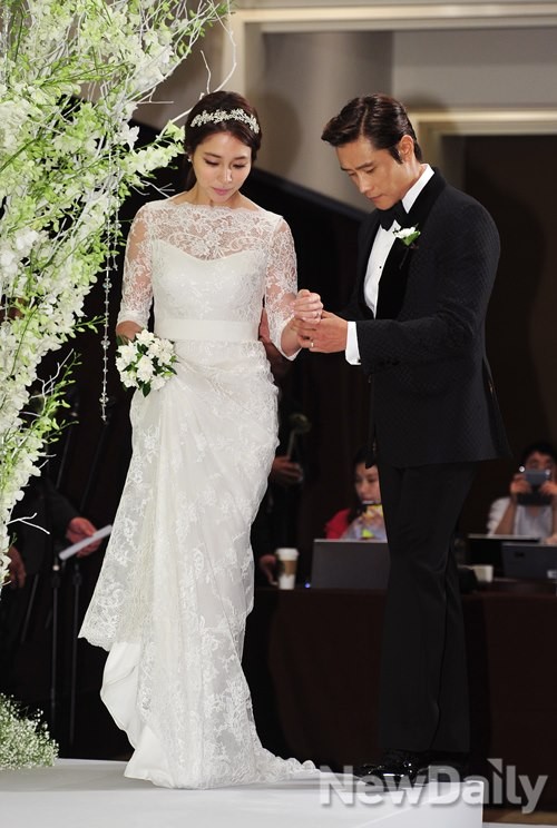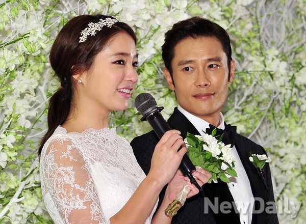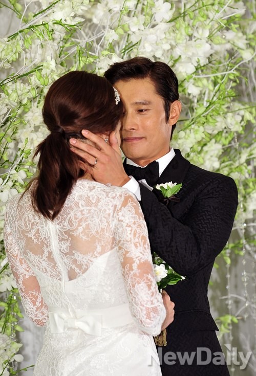 식전 기자회견에서도 서로에 대한 [배려심] 깊은 언행으로 눈길을 끌었다.이병헌은 단상에서 신부의 드레스 자락를 직접 만져주는 등