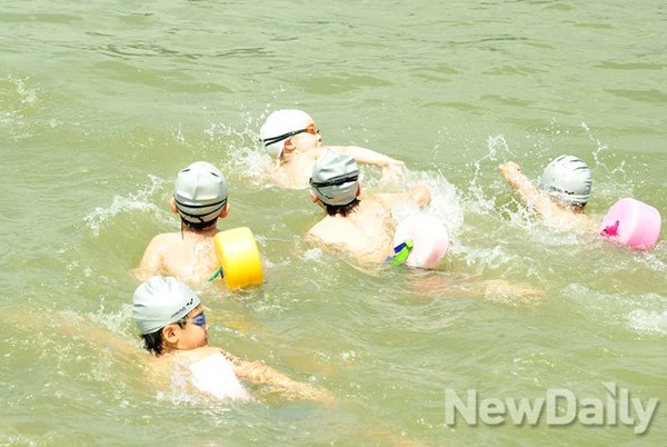 [포토]첨벙첨벙 한강수영, 어린이들의 당찬 도전(어린이 한강헤엄쳐건너기)