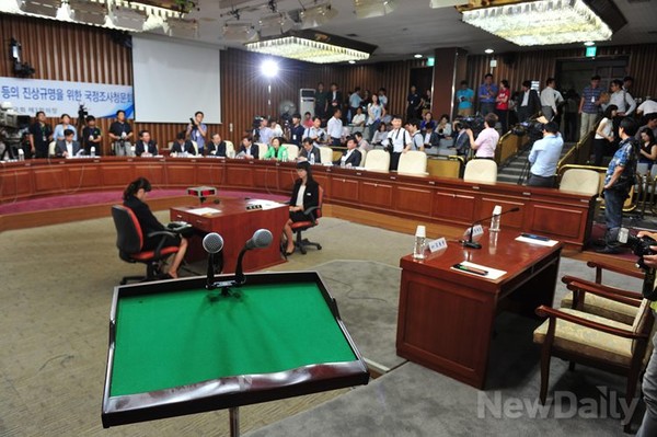 청문회에서 <원세훈>, <김용판> 증인의 좌석이 비어있다.