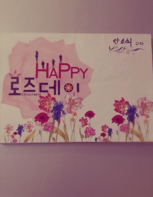 공개된 사진에는 꽃무늬가 그려져 있는 <해피 로즈데이> 대본의 모습이 담겨 있다. 대본 오른쪽 상단에는 안소희의 이름이 눈에 띈다.