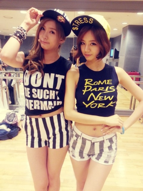 공개된 사진 속 오하영과 혜리는 스냅백과 검은색 민소매 티셔츠에 줄무늬 핫팬츠를 입은 유사한 패션을 선보이며 카메라를 향해 깜찍한 포즈를 취하고 있다.