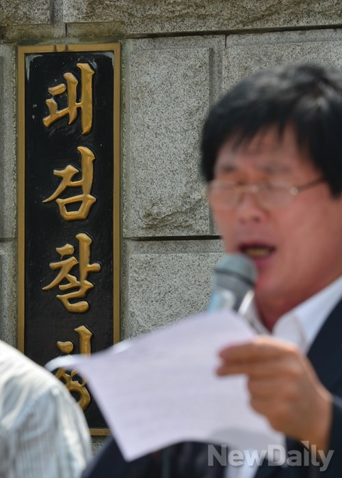 <국정원 댓글사건 증거인 경찰청 CCTV를 조작한 검찰규탄> 긴급 기자회견이 19일 오후 서울 서초구 대검찰청 앞에서 진행됐다.이날 기자회견에서 <자유청년연합>,<애국단체 참참참>,<교학연>,<엄마부대>,<국지모> 등 애국단체는 채동욱 검찰총장의 사퇴를 요구하는 성명서를 발표했다.