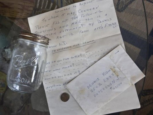 보도에 따르면 1963년 뉴저지주 해안가에서 가족과 여름휴가를 보내던 12살의 소년 데니스 콤사는 과학 실험을 위해 대서양 바다에 유리병 편지를 던졌다.