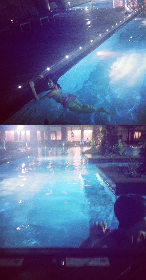 현아가 수영장에서 포착됐다.걸그룹 포미닛 현아는 19일 자신의 인스타그램을 통해 수영장에서 야간 수영을 즐기고 있는 두 장의 사진을 게재했다.