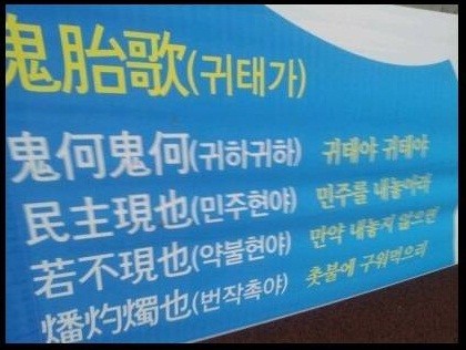 광주시내에 다음과 같은 현수막을 내걸었다.고대시조 [구지가]를 패러디한 [귀태가]다.
