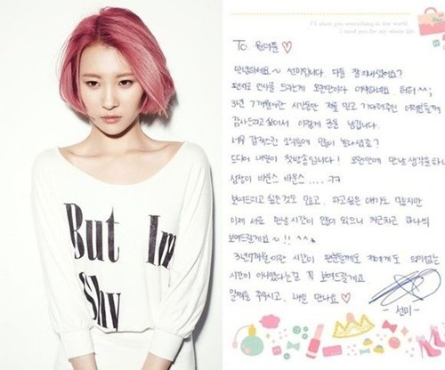 선미는 21일 새벽 원더걸스 공식 팬카페 원더풀에 “안녕하세요. 선미입니다. 다들 잘 지내셨어요? 편지로 인사를 드리는 게 오랜만이라 어색하네요. 3년 7개월이란 시간동안 저를 믿고 기다려주신 여러분들께 감사드리고 싶어 이렇게 글을 남깁니다”라고 운을 뗐다.