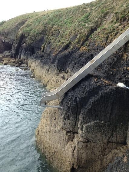 공개된 사진에는 워터파크에서 흔히 볼 수 있는 미끄럼대가 절벽에서 바다로 이어지는 곳에 설치돼 있다. 특히, 이 미끄럼틀은 아찔한 높이와 경사를 자랑하며 슬라이드 끝부분이 바위에 있어 위험해 보인다.