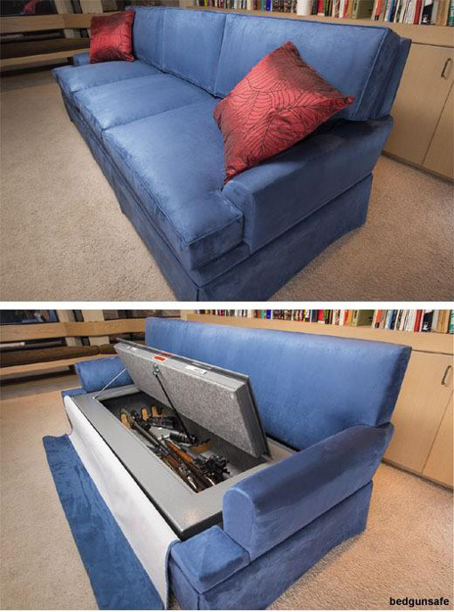 이 소파는 평소 안락하게 쉴 수 있지만 무장 강도의 습격에 대비한 방패로 활용할 수 있다. 또, 소파의 쿠션을 들면 수십 정의 총기를 수납할 수 있는 비밀 총기 보관소로도 사용이 가능하다.