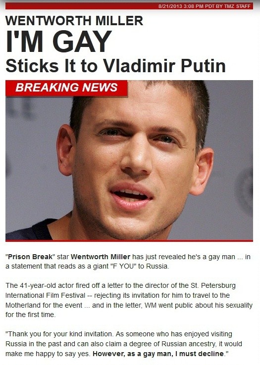 그 후로도 오랫동안 [이성애자인 척] 대외 활동을 해왔다.수년간 자신이 게이임을 숨겨왔던 웬트워스 밀러는
