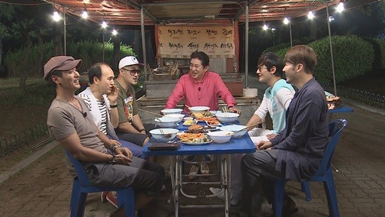 김용건은 “지나가다 불빛이 보여서 들렀다”며 자리에 앉았고, 멤버들은 그를 위해 어묵, 우동 등을 주문했다. 이어 멋진 차림으로 내숭 없이 음식을 먹는 김용건의 모습에 회원들은 “하정우 씨가 먹방의 원조가 아니었다”, “아들은 아버지를 닮는다더니”라며 눈을 떼지 못했다.