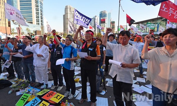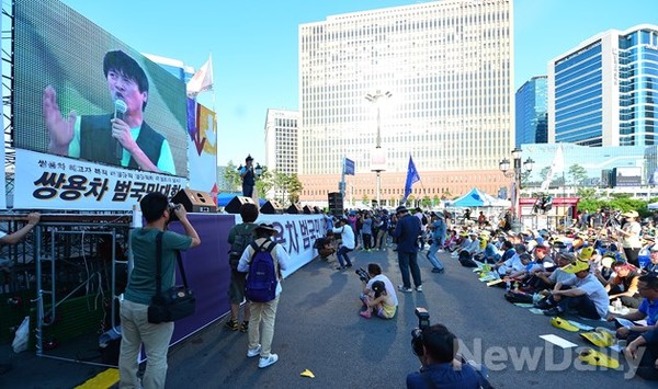 전국 각지에서 모인민노총, 다함께, 민권연대 등좌파단체 회원 1,500여 명이24일 오후 서울 중구 서울역 광장에서<쌍용차범국민대회>를 열고쌍용차 해고자 복직과 국정조사 실시를 주장했다.