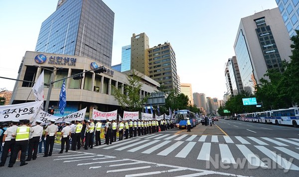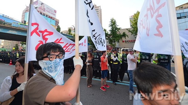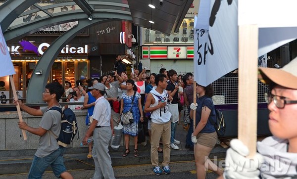 을지로입구 사거리까지 거리행진을 이어갔다.