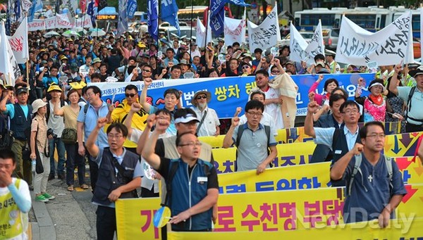 <박근혜 정부 규탄> 등의 구호를 외치며