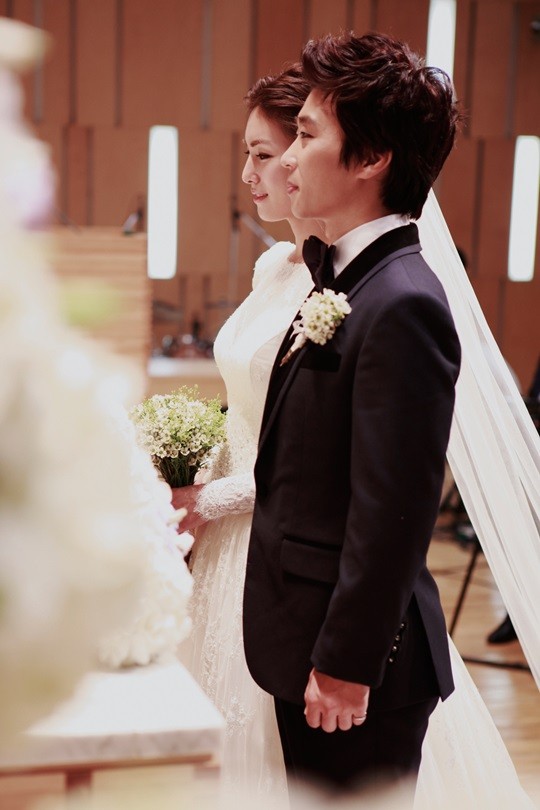 공개된 본식 사진 속 김정화와 유은성은 화사한 미소로 행복감을 한껏 드러냈다. 여성스럽고 단아한 순백의 웨딩드레스를 입은 김정화의 모습과 세련된 수트 정장을 입은 신랑 유은성의 모습이 한 폭의 그림처럼 아름답다.