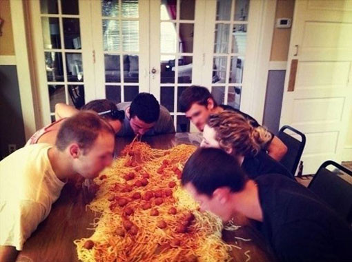 특히, 이 가족은 접시와 포크를 사용하지 않고 그냥 식탁에 올려진 거대한 양의 스파게티를 입으로 먹고 있어 보는 이들을 경악케 했다.