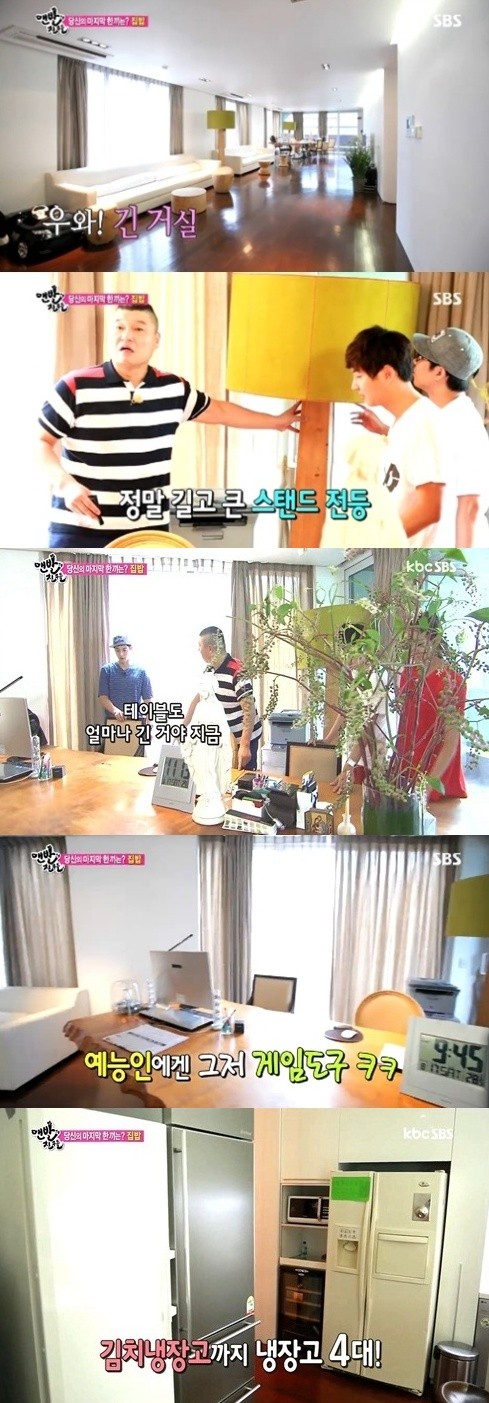 또, 거실 끝에 자리한 집무실에는 고급스러운 원목 테이블이 놓여 있었다. 어떤 일을 하냐는 질문에 홍진경은 “터넷 서핑과 이름 검색을 한다. 아침, 점심, 저녁으로 세 번 검색 한다”고 밝혀 웃음을 자아냈다.