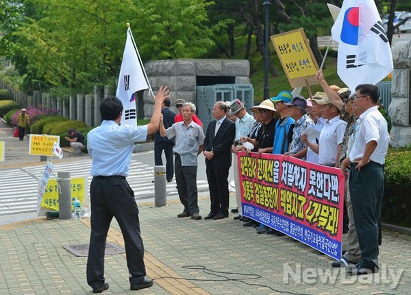 <종북좌익척결단>, <나라사랑실천운동>, <자유민주수호연합>, <반국가교육척결국민연합>, <멸공산악회>등 애국단체가 28일 오후 서울 서초구 대검찰청 정문 앞에서 <진재선 검사>와 <채동욱 검찰총장>의 책임을 묻는 기자회견을 가졌다.