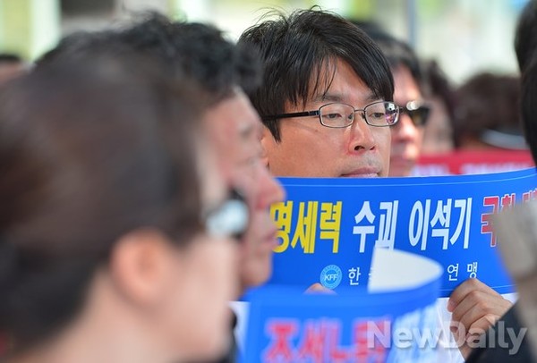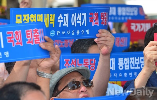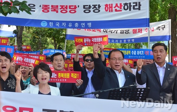 한국자유총연맹이 30일 오후 서울 여의도 국회의사당 앞 KB국민은행 서여의도점에서 <내란 음모 종북세력 이석기 일당 규탄 기자회견>을 가졌다.