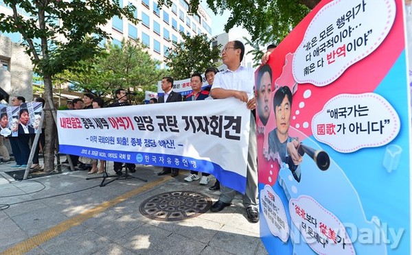 바닥에 놓고 발로 밟는 퍼포먼스를 벌였다.북한지령 수행하려 한 이석기 종북세력 일당을 국회에서 제명하라
