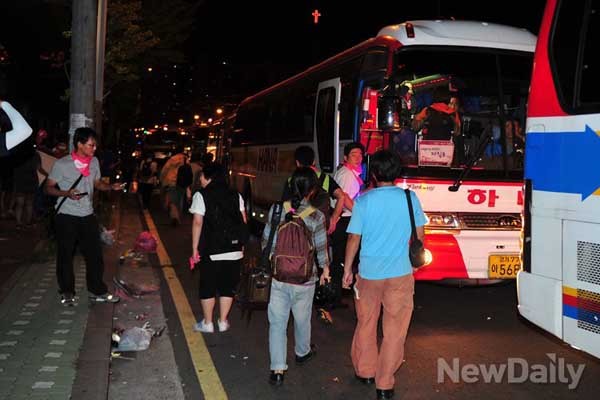 시위대가 타고 온 전세버스를