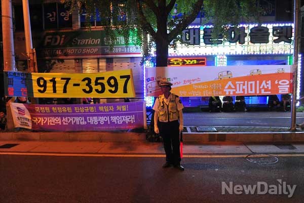 시위대 주변에 [폴리스 라인]을 설치하고,