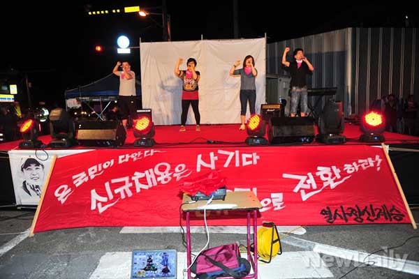 운동가요, 타악공연 등을 하면서 시위를 이어갔다.이러는 사이,