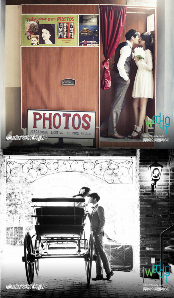 정성윤 김미려 커플의 웨딩 촬영은 강남에 위치한 원규 스튜디오에서 진행되었으며, 두 사람을 비롯한 많은 동료 연예인들이 함께해 촬영의 분위기를 북돋웠다.