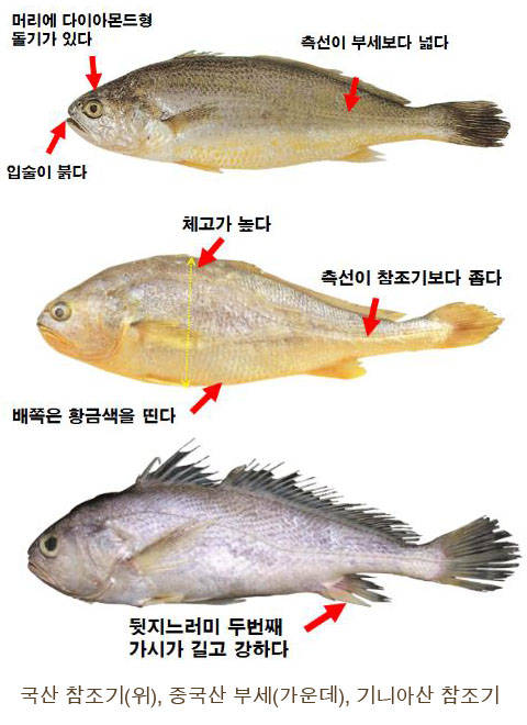 조기의 경우 국산 참조기는 균형이 잘 잡혀 있어 잘생겼다는 느낌을 준다.