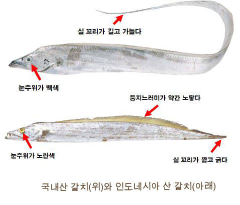갈치는 국산이 꼬리가 긴 특징이 있다.