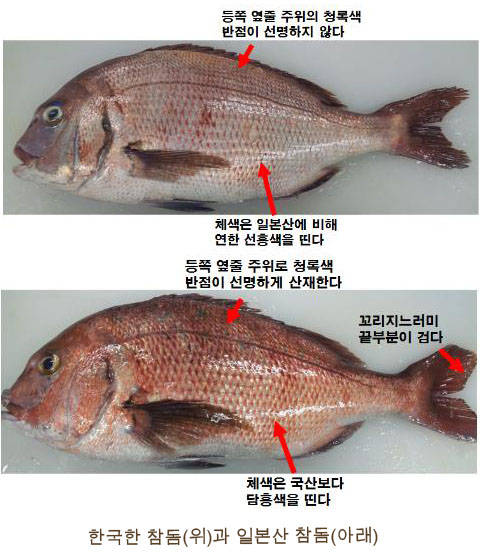 참돔은 육안으로 구별이 쉽지 않을 만큼 국산과 일본산이 비슷하다.