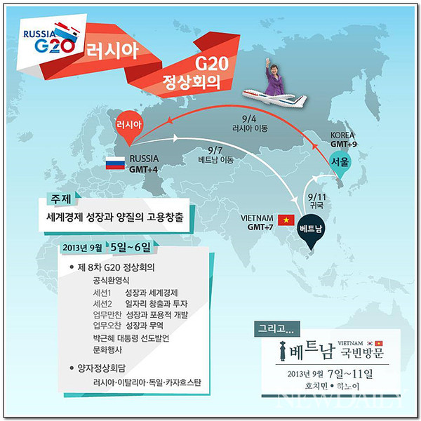 각국 정상들과 머리를 맞대고 국제 정세를 논의한다.박근혜 대통령은