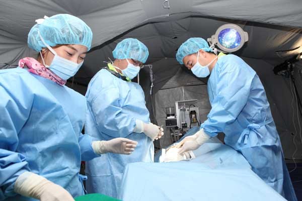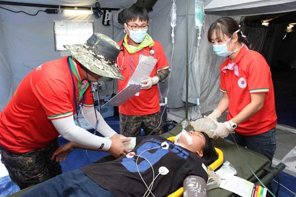해외파견 긴급구호대 합동훈련을 하고 있다.국군의무사령부는