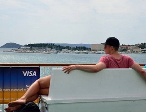 공개된 사진에는 한 남자가 벤치에 앉아 바다를 바라보고 있다. 그런데 사진을 자세히 보면 벤치 끝부분에 인어공주처럼 옆으로 모으고 있는 다리가 보인다.