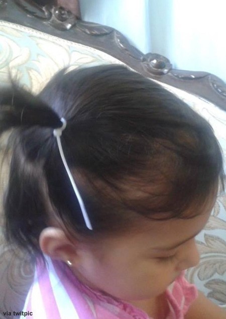 공개된 사진에는 여자 아이의 머리카락이 하나로 단정하게 정리돼 있다. 그런데 자세히 보면 아이의 머리카락이 복잡한 전선을 정리할 때 사용되는 케이블타이로 묶여 있어 눈길을 끈다.