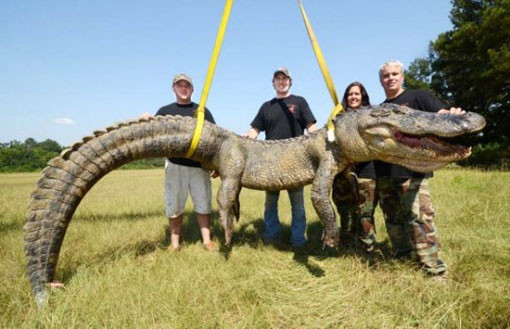 이 악어는 미시시피주에서 잡힌 악어 가운데 가장 무거운 악어로 얼마 전 더스틴 복먼(27) 일행이 잡은 4.1m의 악어보다 약 6.5kg이나 더 나간다.