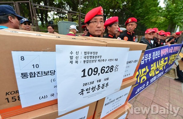 법무부에 [통진당 해산 청원자 명단] 전달했다.
