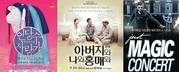 결실의 계절 가을을 맞아 무대가 더욱 풍성해지고 작품은 깊이를 더 하고 있다. 다가오는 올 추석연휴, 가족들이 함께 볼만한 공연을 소개한다. 많은 사람들이 공감하는 주제인 가족에 대한 애틋한 사랑, 그리고 에너지 넘치는 무대가 연휴를 맞은 관객들의 마음을 따뜻하게 적실 것으로 보인다.고전의 발칙한 재해석, 뮤지컬 <인당수 사랑가>