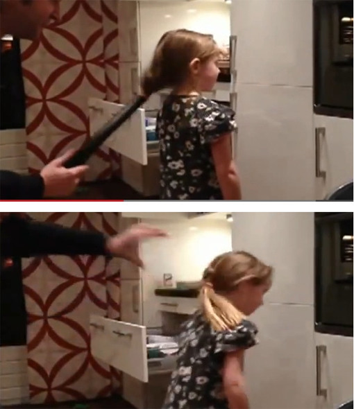 공개된 사진에는 딸 아이의 머리를 끈 대신 진공청소기를 이용해 묶어주는 아빠의 독특한 방법이 담겨 있다. 아빠는 진공청소기 흡입구에 고무줄을 준비한 뒤 딸의 머리를 빨아들였고, 그 다음 흡입구에 준비해둔 고무줄로 딸의 머리를 단정하게 묶었다.