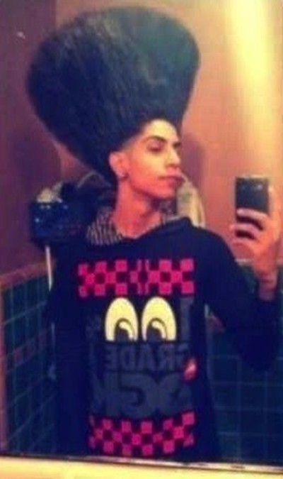 공개된 사진에는 한 남성이 거울에 비친 자신의 모습을 카메라에 담고 있다. 그런데 이 남성의 헤어스타일이 매우 독특해 눈길을 끈다. 그는 긴 머리를 하늘로 치솟게 스타일링해 비오는 날씨에도 우산이 필요없어 보인다.