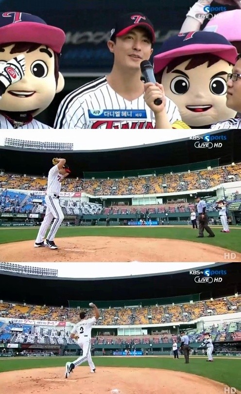 다니엘 헤니는 14일 오후 잠실구장에서 열린 2013 한국야쿠르트 세븐 프로야구 NC 다이노스 대 LG 트윈스의 경기에 시구자로 나서 시선을 사로잡았다.